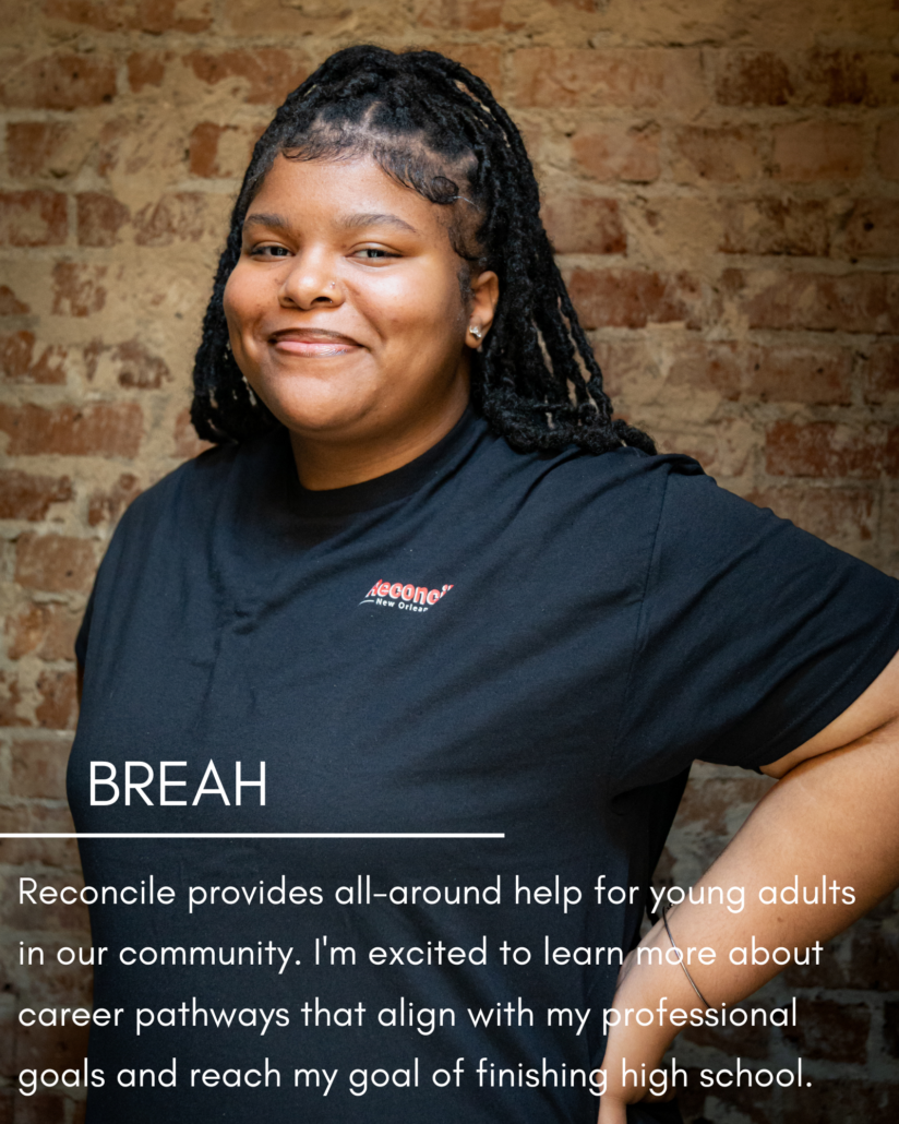 “Reconcile provides all-around help for young adults in our community. I’m excited to learn more about career pathways that align with my professional goals and reach my goal of finishing high school.”